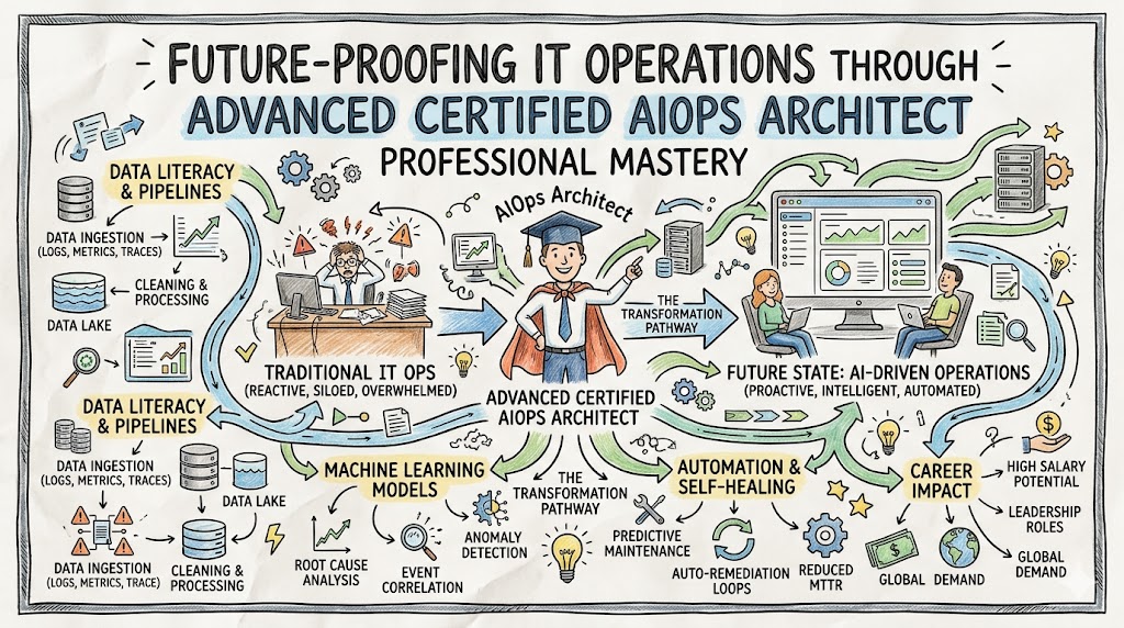 The Certified AIOps Architect program empowers technical leaders to command the next generation of automated infrastructure. Modern engineering teams face a tidal wave of telemetry data that renders traditional monitoring obsolete. By integrating machine learning directly into the operational heart of an organization, professionals can predict outages before they impact users. This guide explores how AIOpsSchool provides the framework for engineers to transition from reactive troubleshooting to proactive system orchestration.